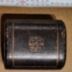 Portable communion set for house and hospital visits consisting of a small case containing a miniature chalice and glass bottle with silver cap.Manufacture: Birmingham England