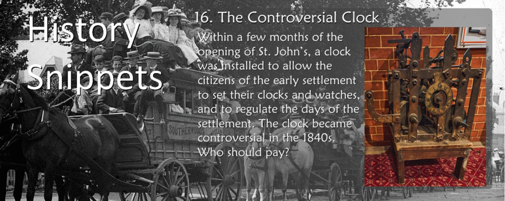 With the end of government funding of the church in the 1840s, the issue of responsibility for the maintenance, winding and setting of the clock became controversial. The townspeople argued that the church was well-paid from various fees and could afford it, and the church argued that it was a public asset which happened to be situated in the church tower, so the local council and townspeople should pay, as they needed it as mentioned.